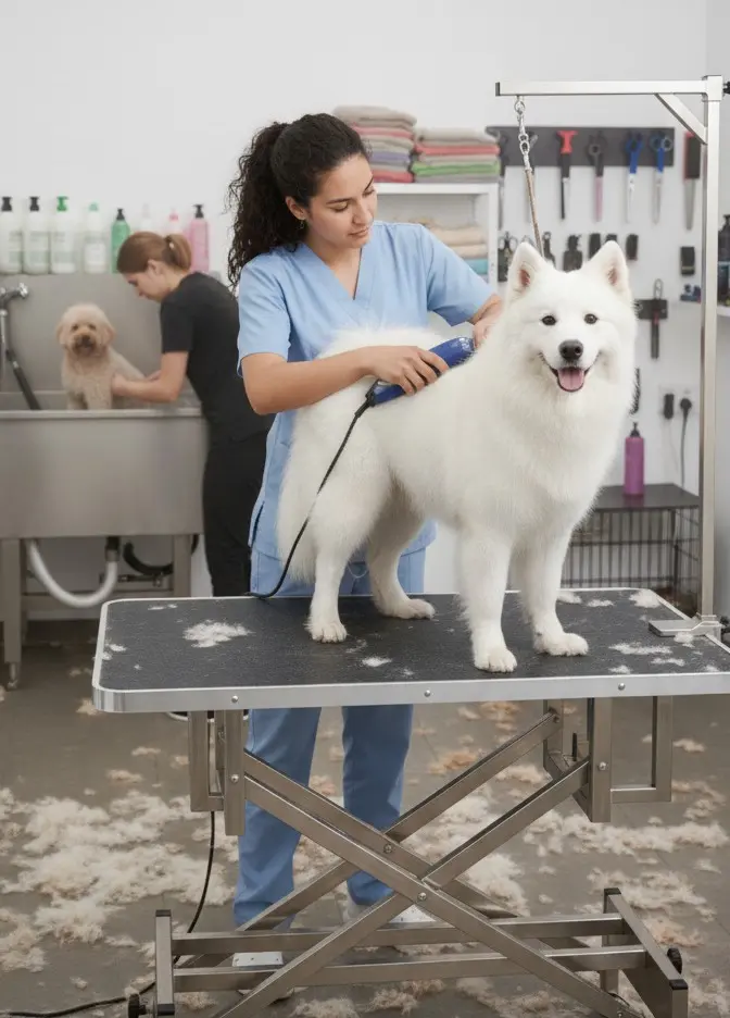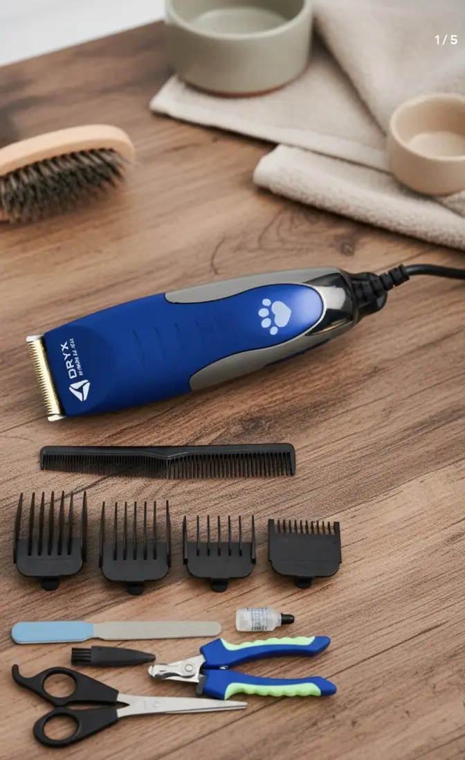 💇 Accesorios de Estilo: Tijeras de precisión para recortar zonas delicadas (cara, patas) y un peine para desenredar antes del corte.