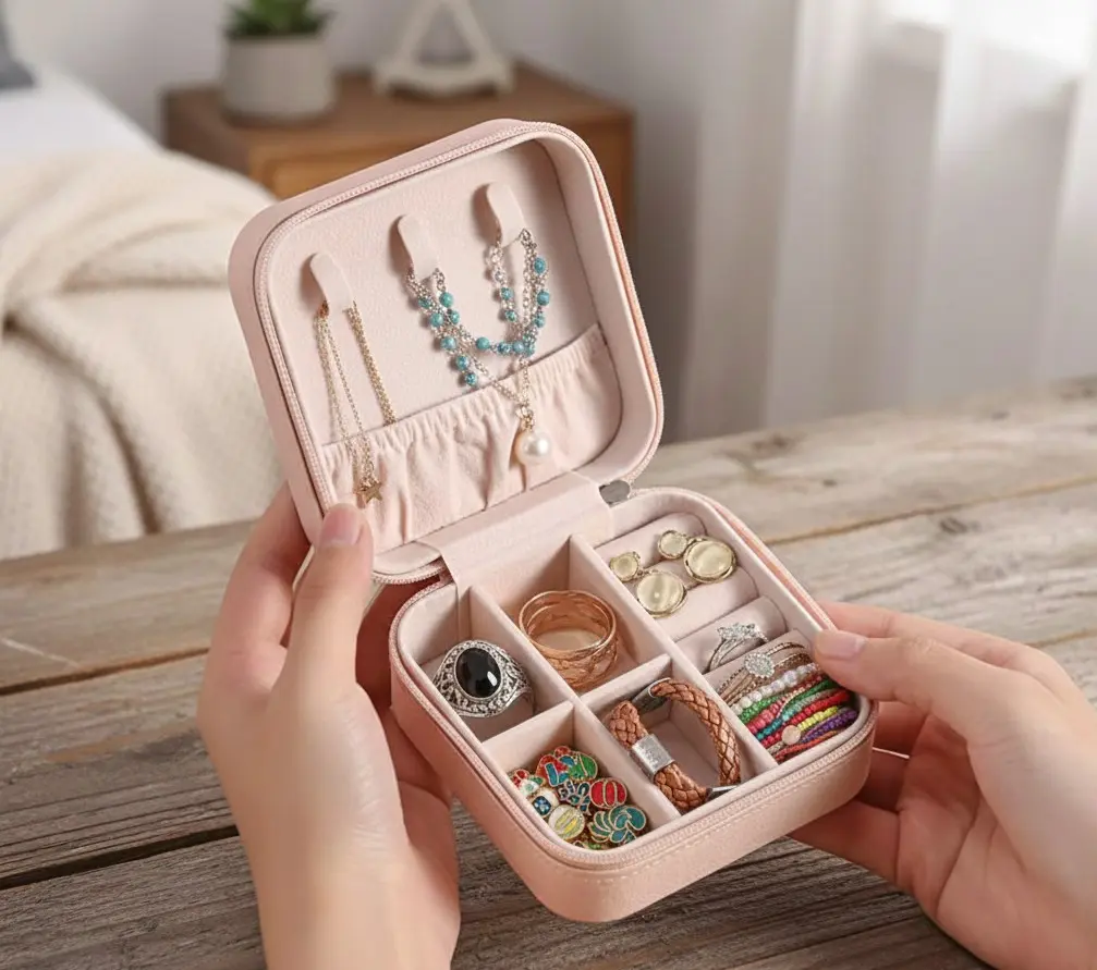 💎 Interior organizado: compartimentos pensados para anillos, aros, collares y pulseras.